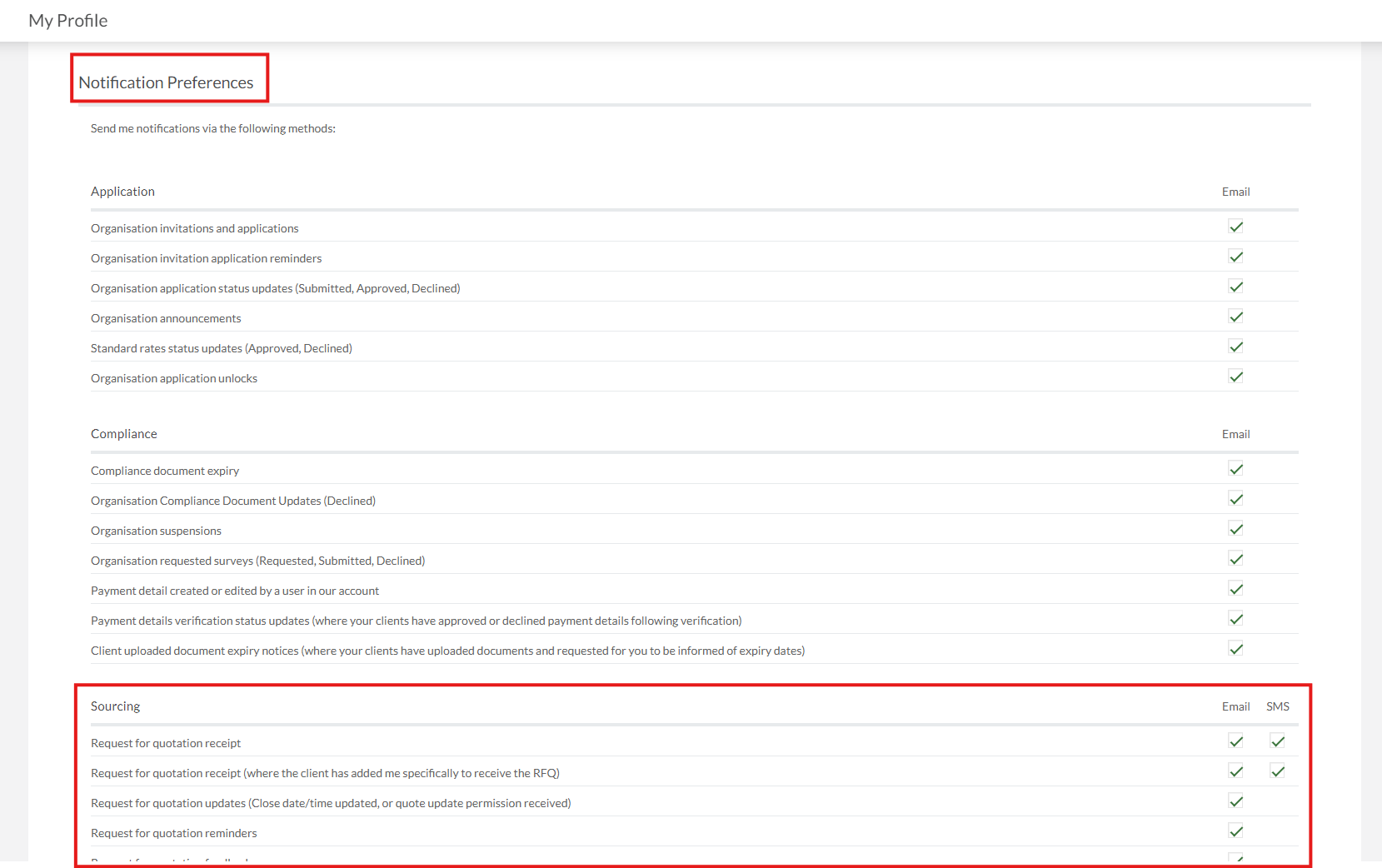 If you provided an Australian mobile number, we also auto opted you into receipt of text messages for key RFQ notifications.
